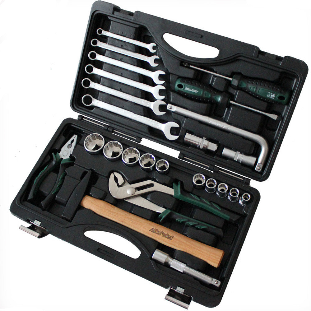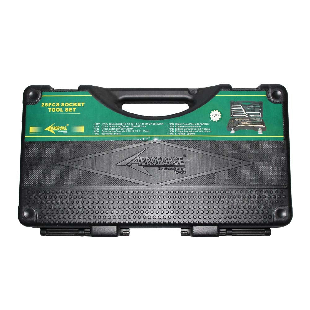 25pc 1/2″ Dr Socket Set 10-32mm Wrench 8-18mm Plier Driver Plug 16-18mm Hammer