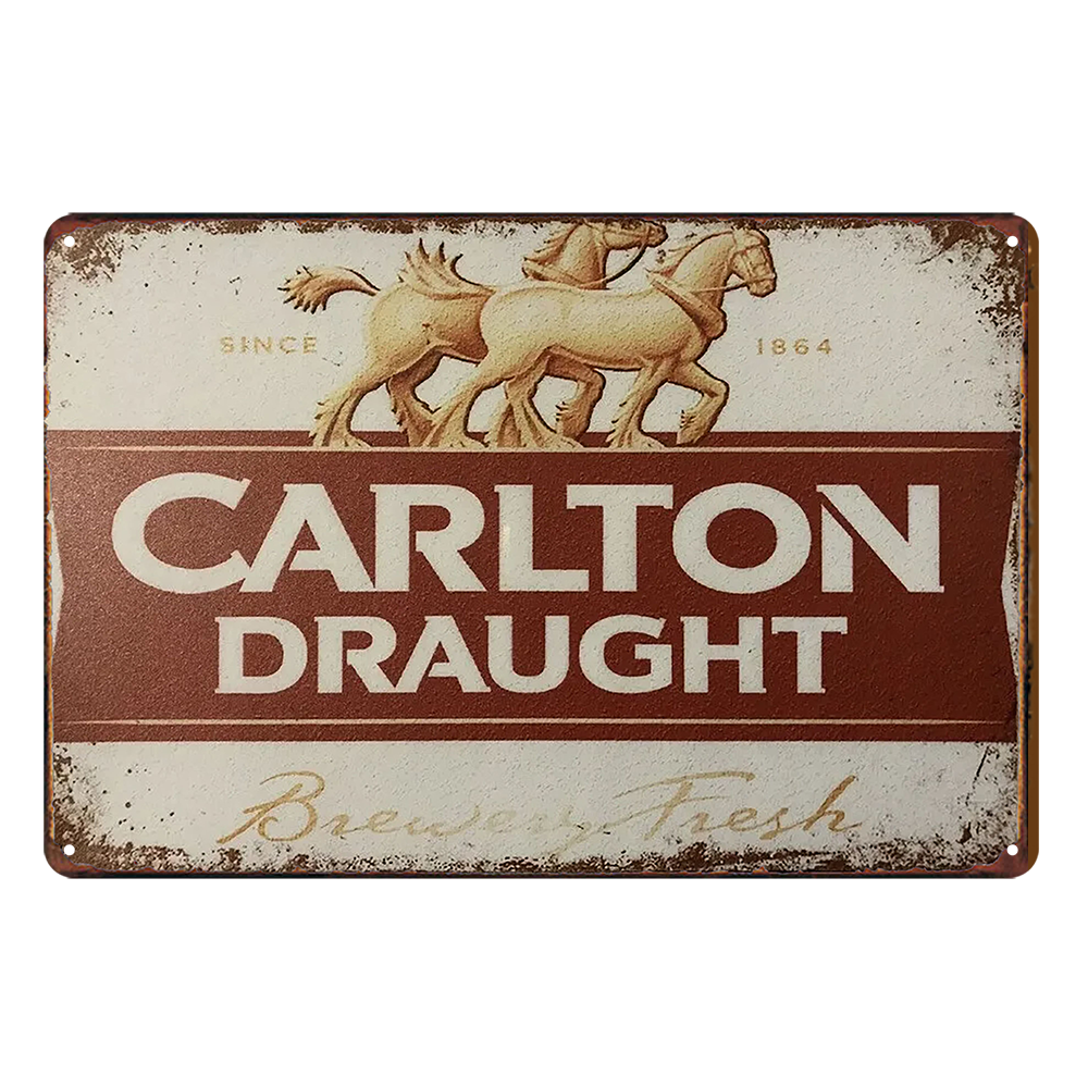 2x Carlton Draught Beer Rustic Tin Sign Vintage Garage Bar