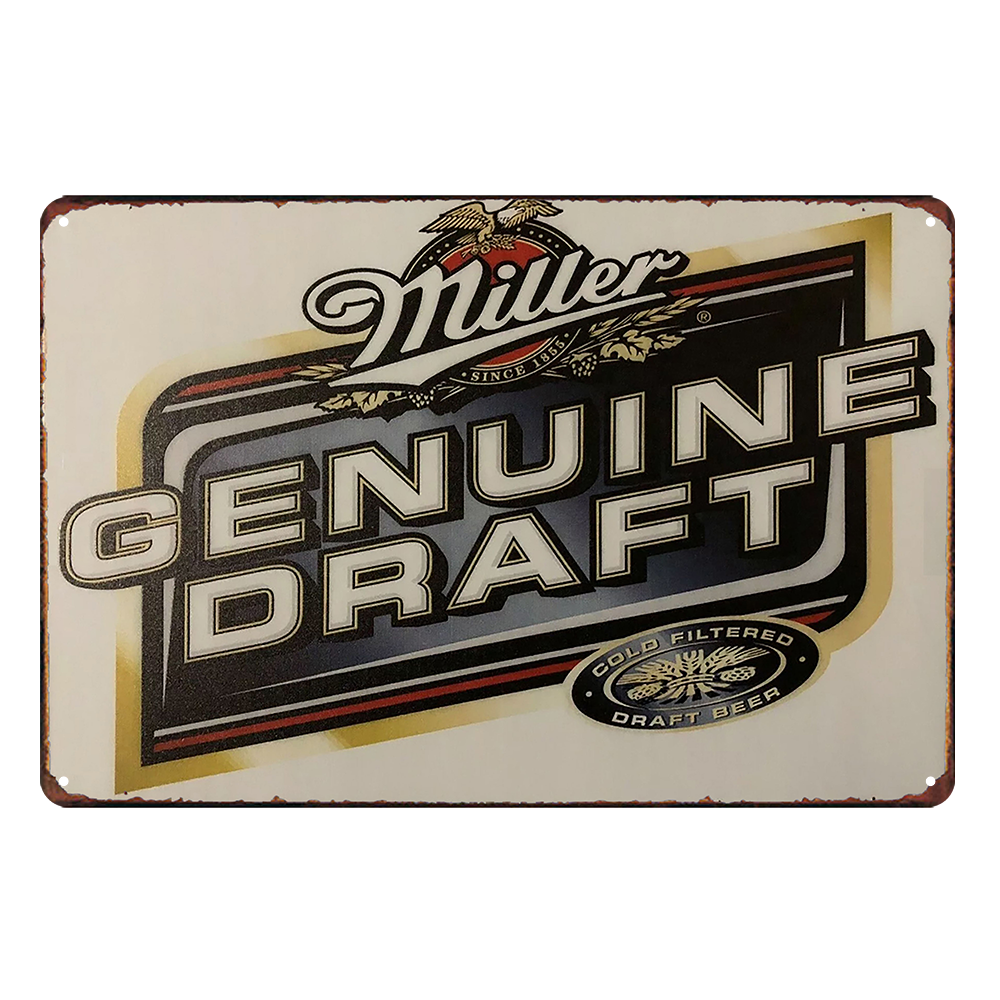 2x Genuine Draft Beer Miller Rustic Metal Sign Vintage Tin Shed Garage Bar