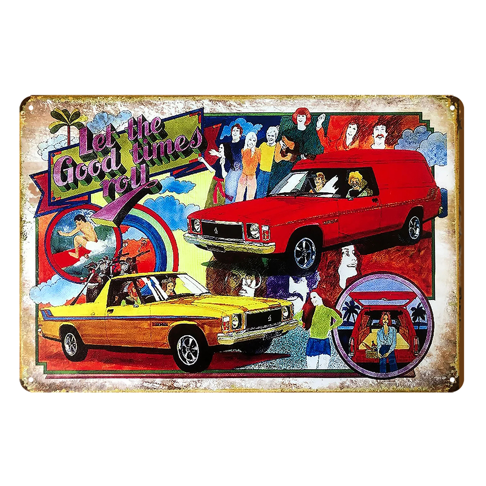 2x Holden Let The Good Times Roll Rustic Tin Sign Vintage Garage Bar Man Cave