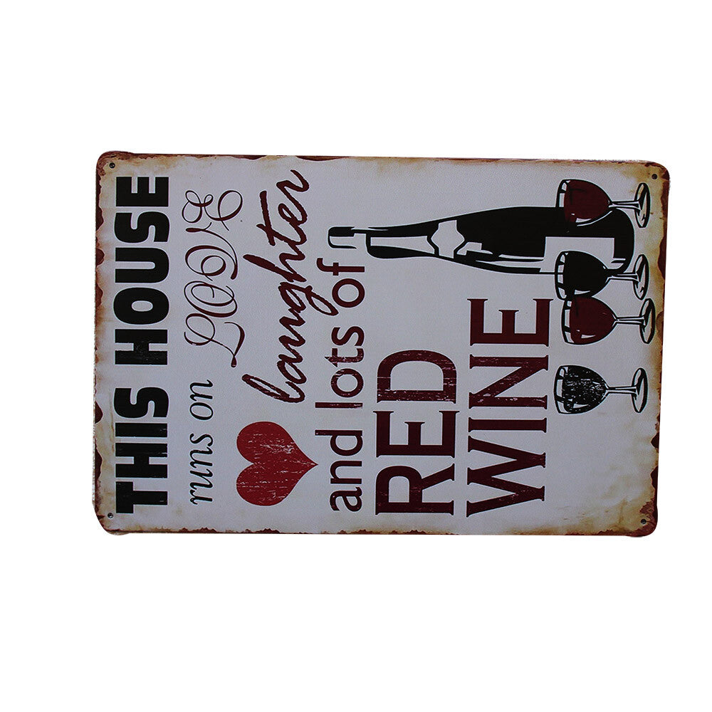 2x Vintage Tin Sign This House Runs On Love Red Wine 200x300mm Cute Metal Retro