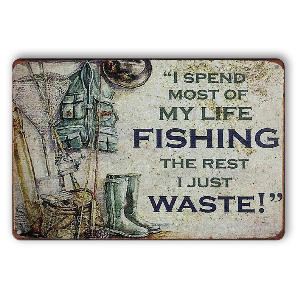 3x Tin Sign Fishing Rest Waste I Spend Most Life Man Cave