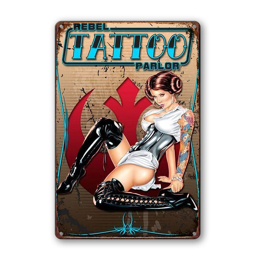 Tattoo Parlor Rebel Girl Tin Sign Man Cave Shed Garage