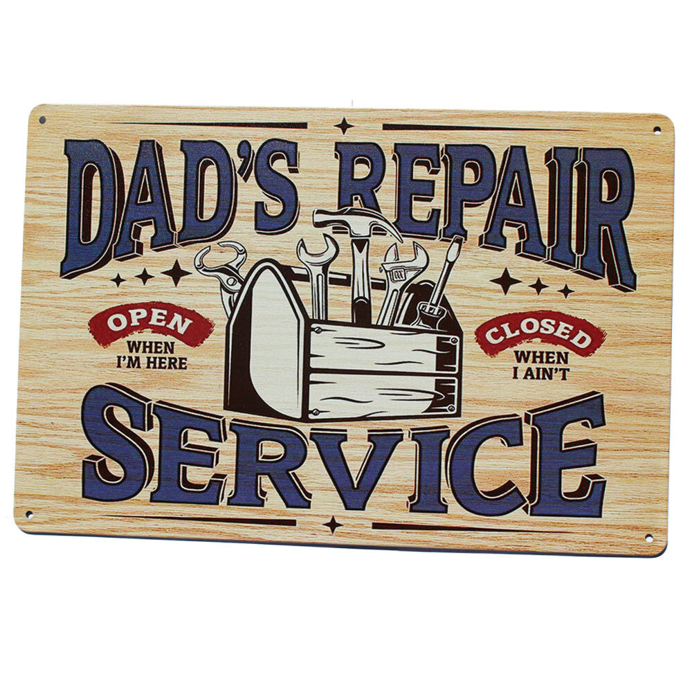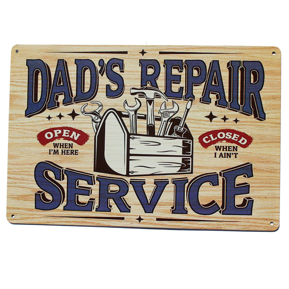 Tin Sign 200x300mm Dad's Repair Service Metal Pre-punched Corner Holes Hanging