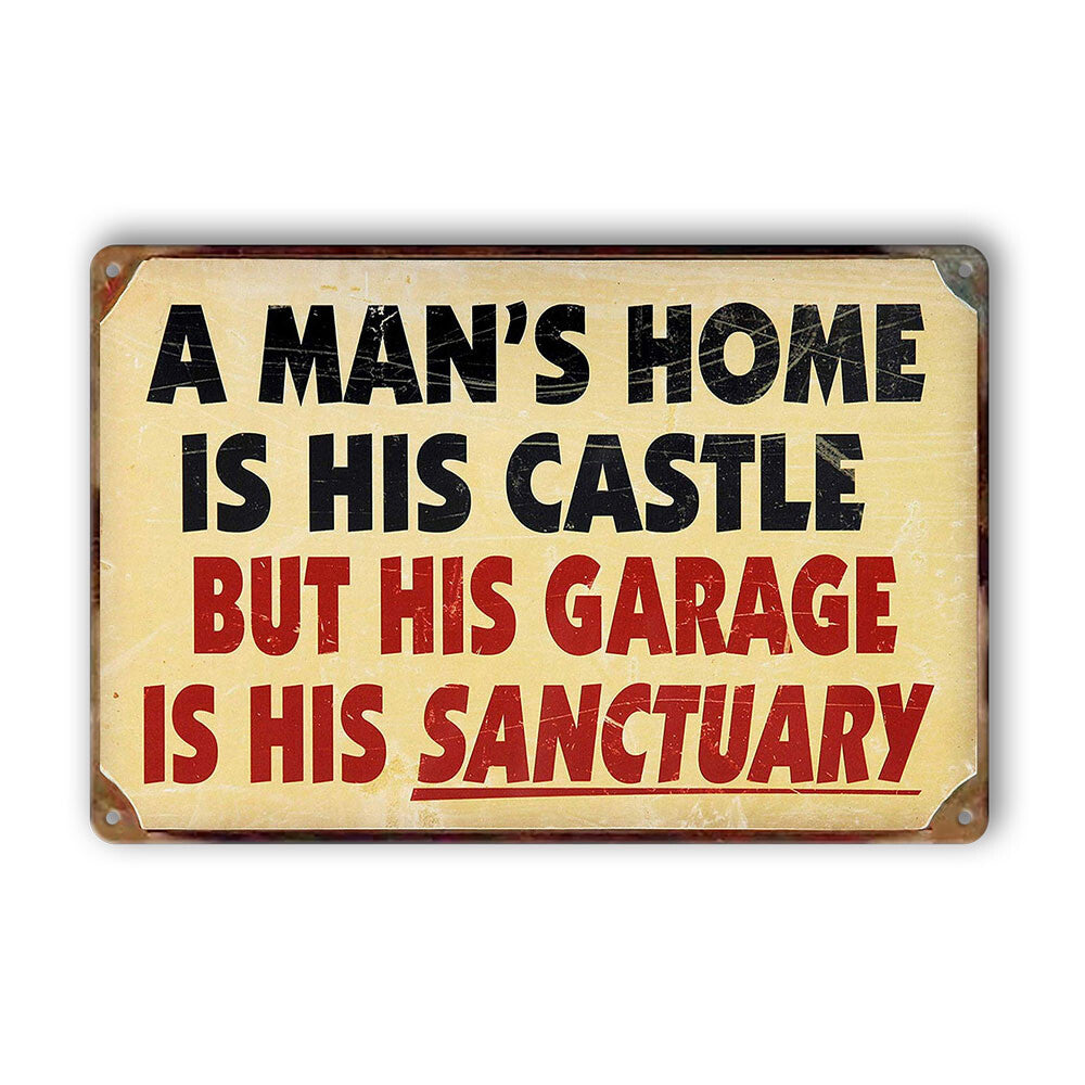 Tin Sign A Man's Home Is His Castle But His Garage Is His Sanctuary Cave Bar
