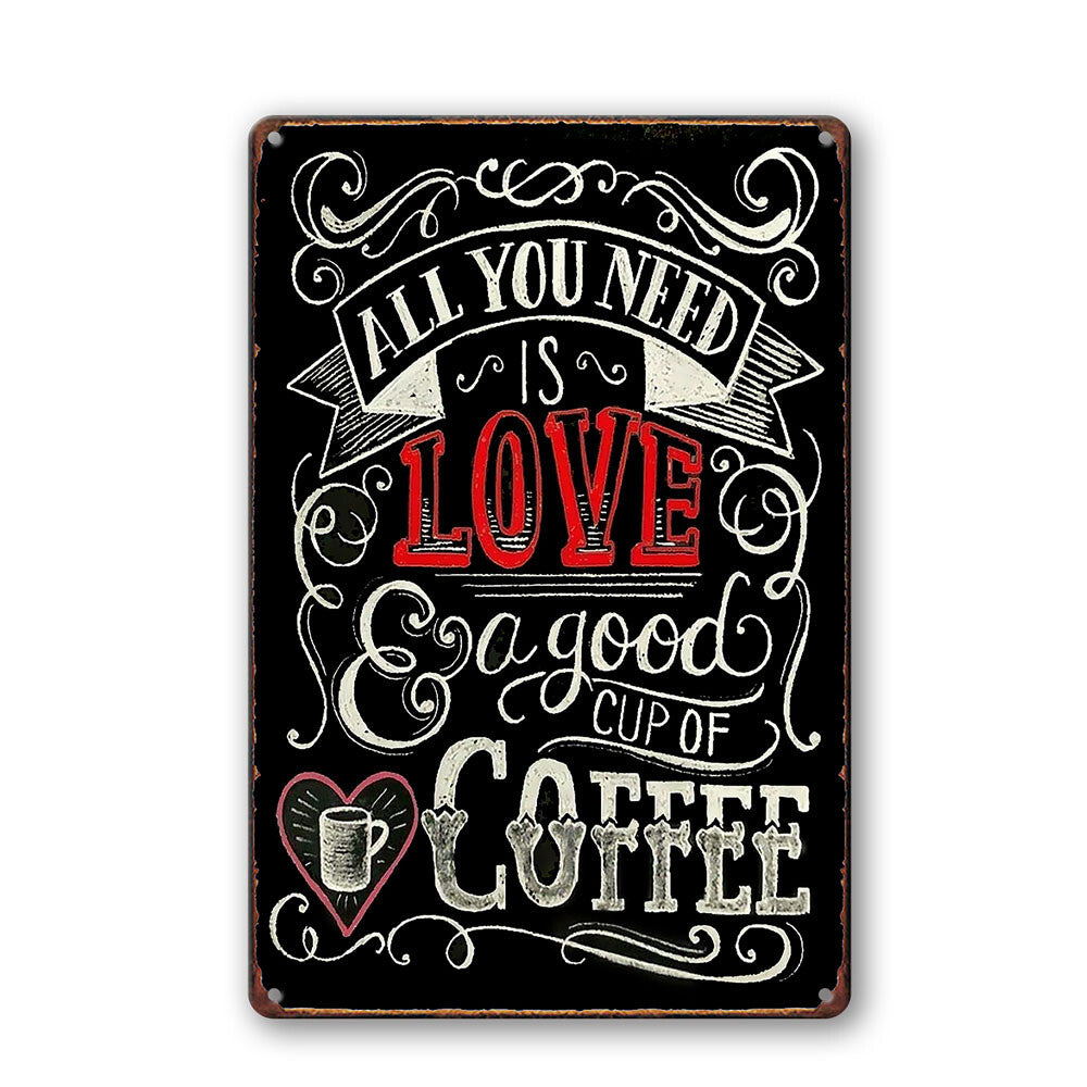 Tin sign all you need is love a good cup ofcoffee home decor cave.