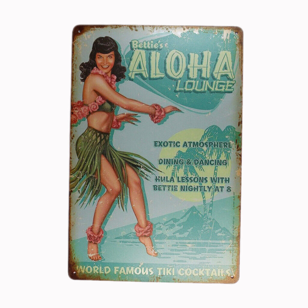 Tin sign aloha lounge sprint drink bar whisky rustic look.