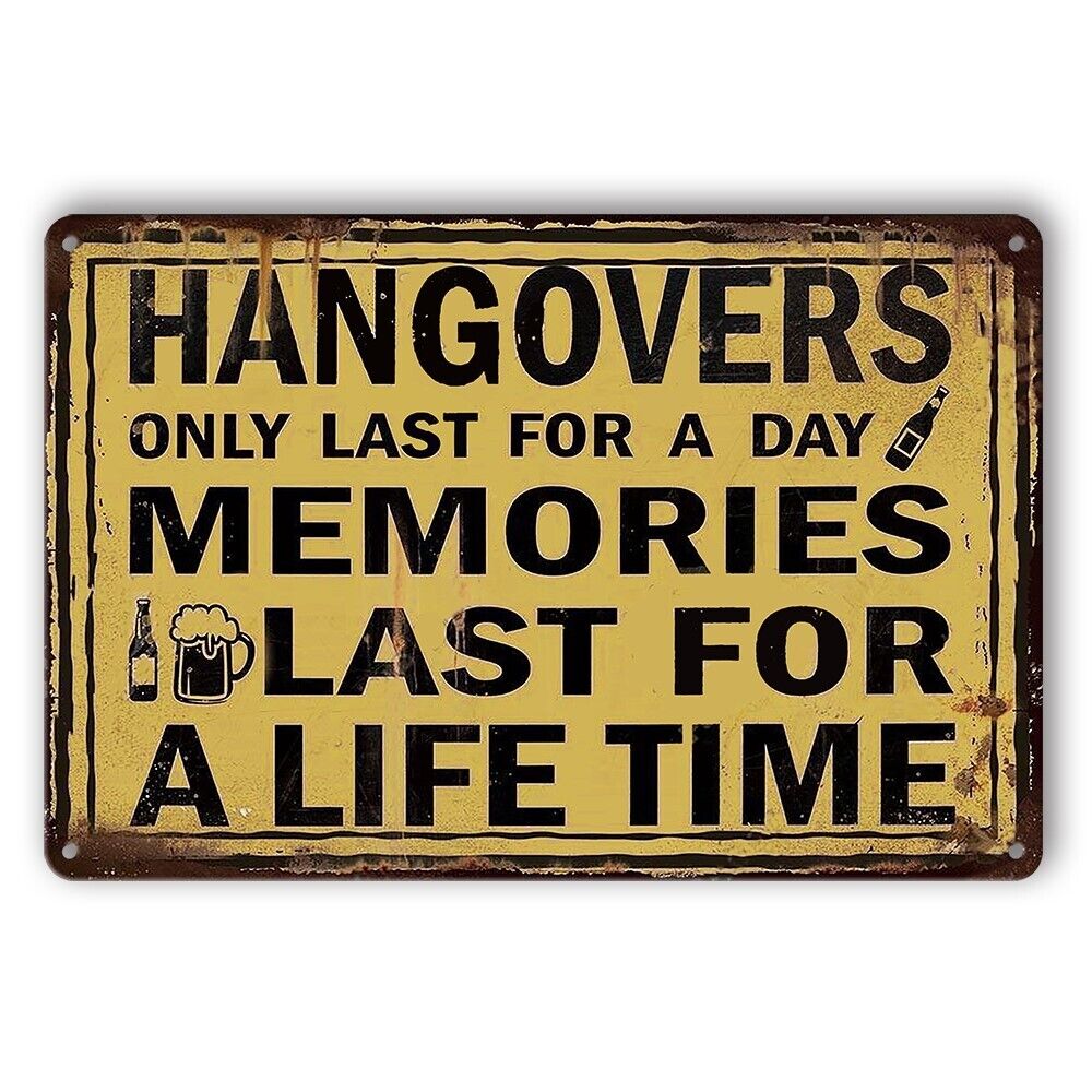 Tin Sign Hangovers Memories Last For A Life Time Rustic Look Decorative