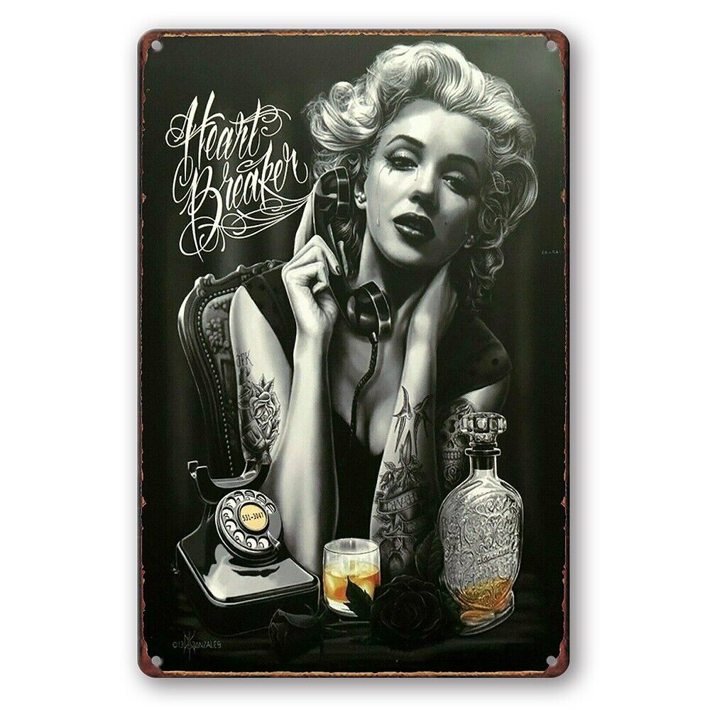 Tin Sign Heart Breaker Sexy Marilyn Monroe Alcohol Crying Woman Phone Rustic L