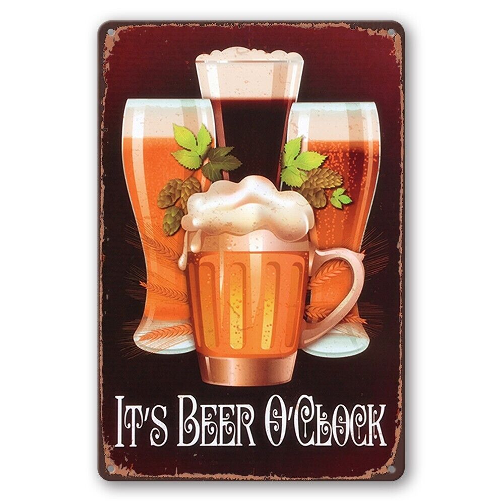 Tin Sign It's Beer O'clock Drink Wine Bar Man Cave Rustic Look Decorative Wall