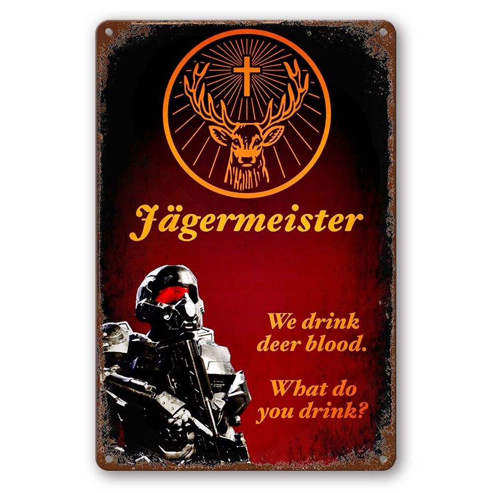 Tin Sign Jagermeister Deer Blood Drink Red Rustic Look Decorative Wall Art