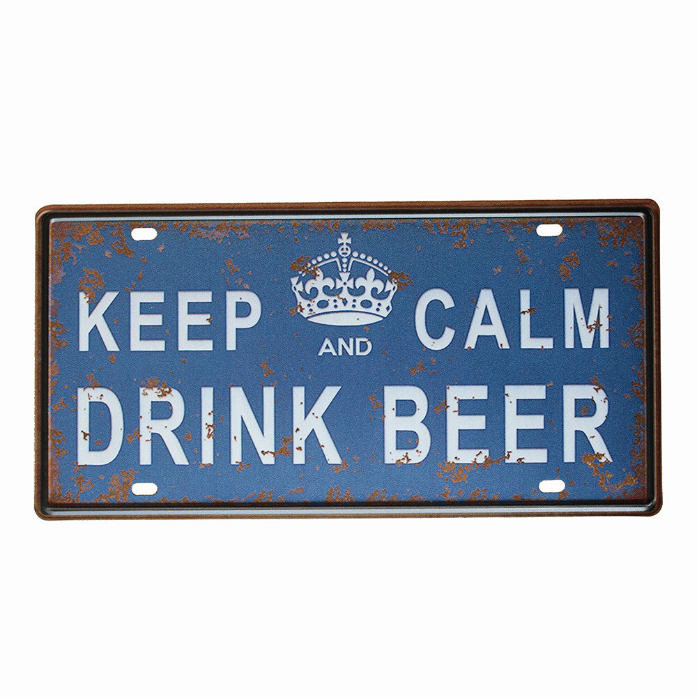 Tin sign keep and calm drink beer metal tin sign vintage retro 150x300mm metal.