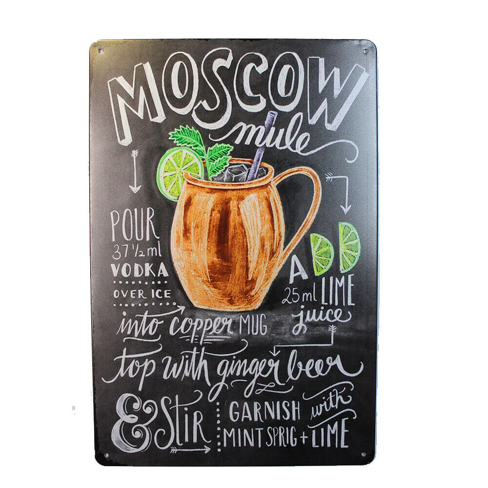Tin sign moscow mule sprint drink bar whisky rustic look.