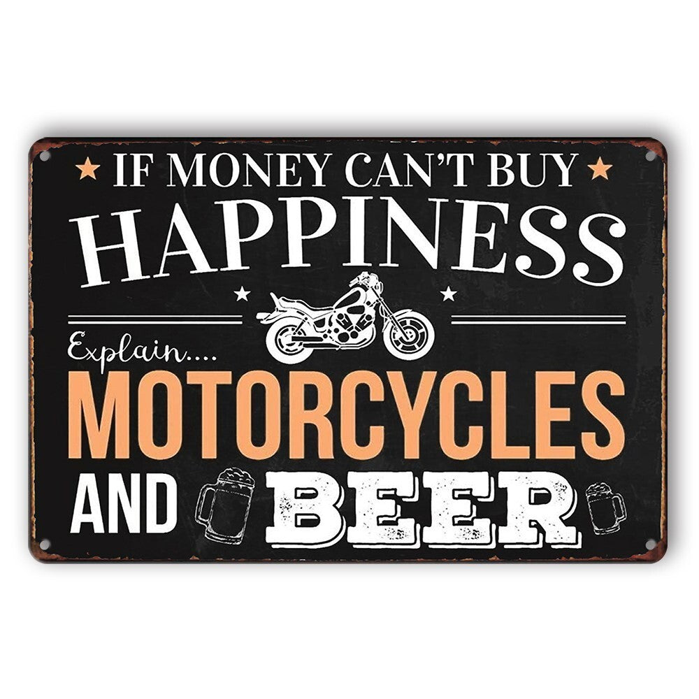 Tin Sign Motorcycles Beer Happiness Explain Rustic Look Decorative Wall Art