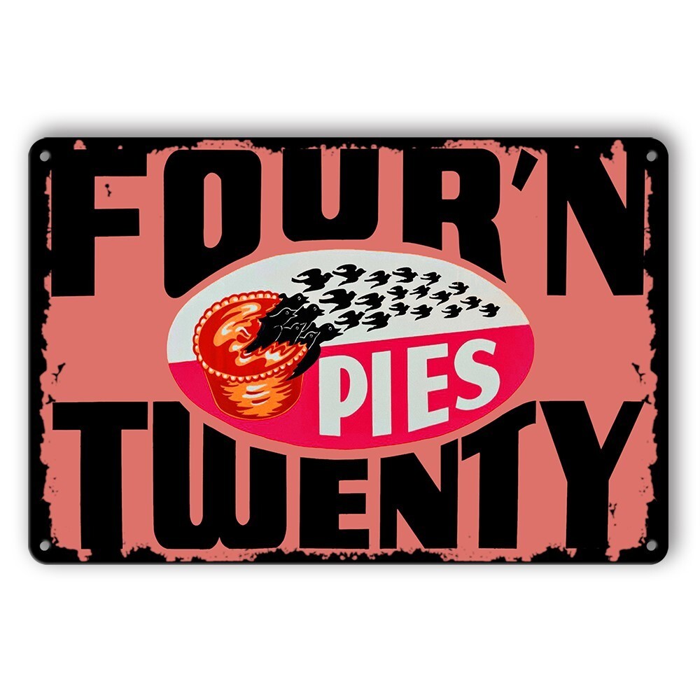 Tin Sign Pies Four'n Twenty Crows Rustic Look Decorative Wall Art