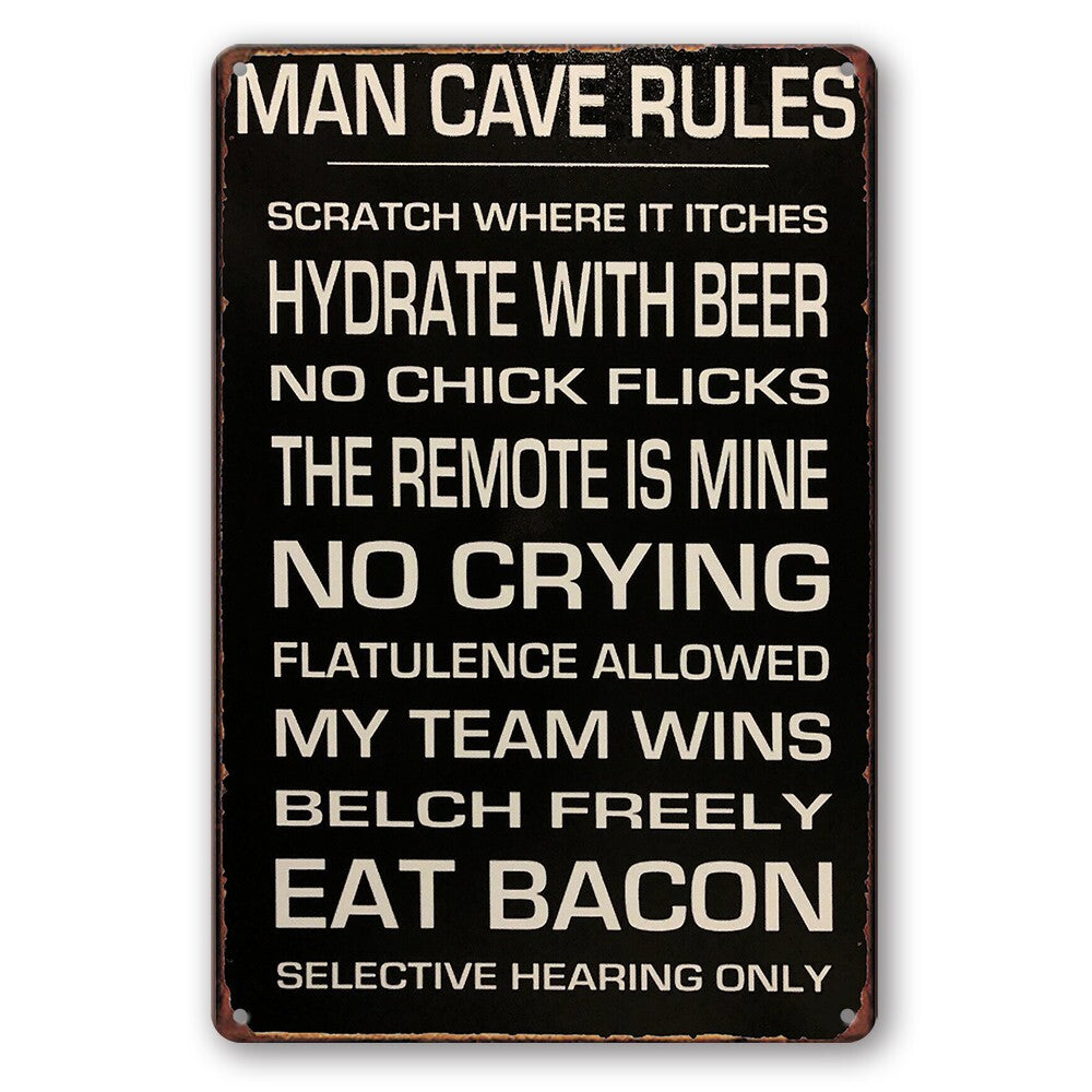Tin Sign Rules Man Cave Beer Remove No Crying Wins Bacon Rustic Look Decorative