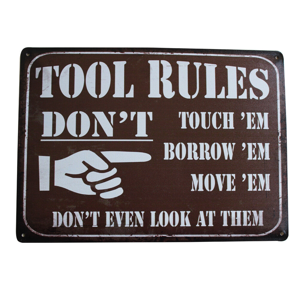 Warning Metal Tin Sign Tool Rules No Not Move Touch Borrow Look At 300*200mm