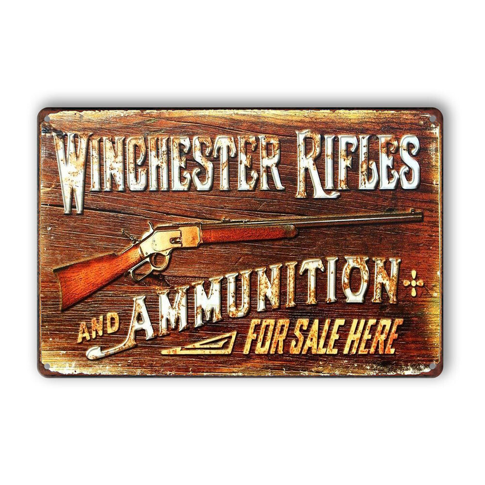 Winchester Rifles Ammunition Tin Sign Rustic Man Cave Bar